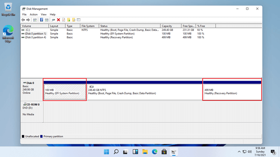 What is EFI and Recovery partition in Windows 11