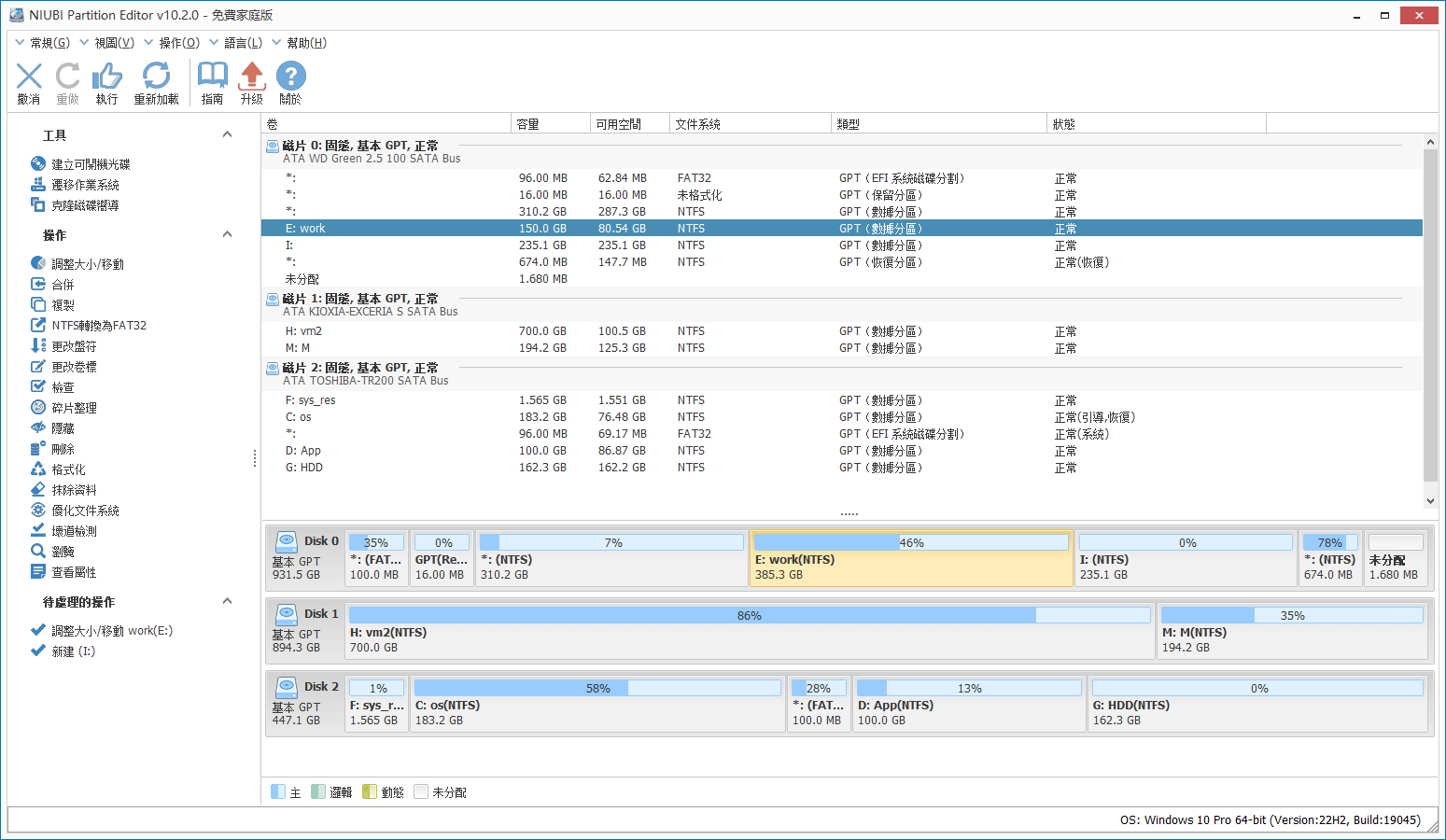 作為適用於 Windows 11/10/8/7/Vista/XP 電腦的最安全、最快速的免費磁碟分割軟體,NIUBI Partition Editor 免費版可協助壓縮、延伸、移動、合併磁碟分割以最佳化磁碟空間。轉換磁碟分割類型。複製磁碟分割以遷移作業系統和資料。最佳化檔案系統和重組磁碟分割以提高電腦效能。建立、刪除、格式化、隱藏、啟用、抹除磁碟分割,掃描壞軌等等。